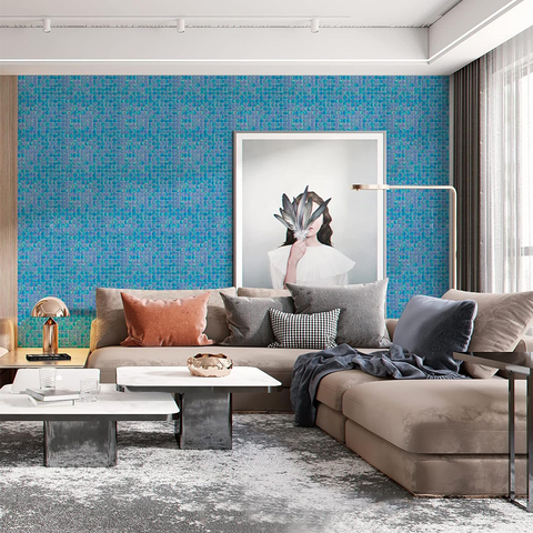 Stile cinese piastrelle di mosaico di vetro blu iridescente per la parete della cucina bagno piscina decori soluzione di progettazione grafica